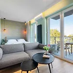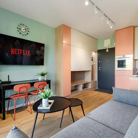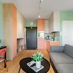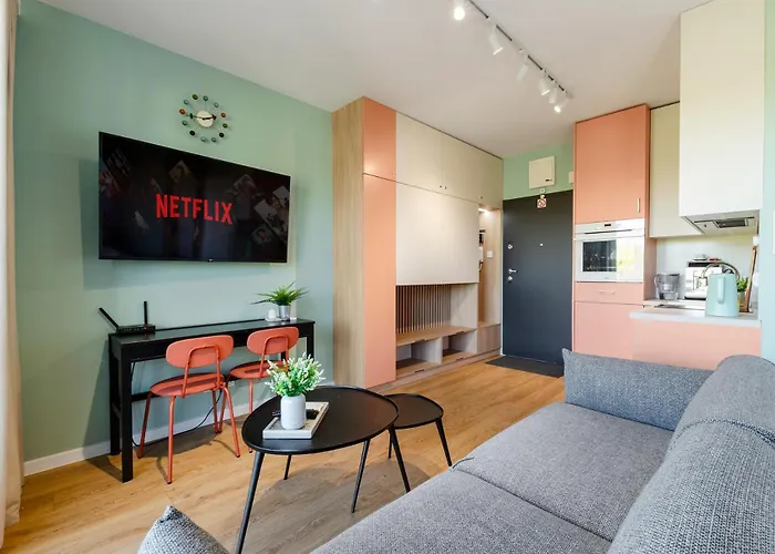 تشتمل مرافق الخدمة الذاتية على منطقة المطبخ الصغير المجهز مع البرَّاد والفرن وأدوات المطبخ. تقع الشقة في المنطقة المجاورة مباشرة ل محطة حافلات Zachodnia - Manufaktura. ولجعل إقامتك أكثر متعة، يتم توفير الشرفة الّتي تطلّ على الحديقة.
